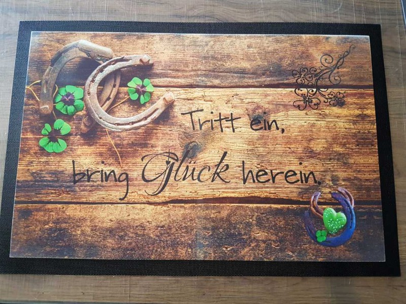 Ganz neu bei uns im Programm ist der Druck individueller Fußmatten und Keramiktassen.